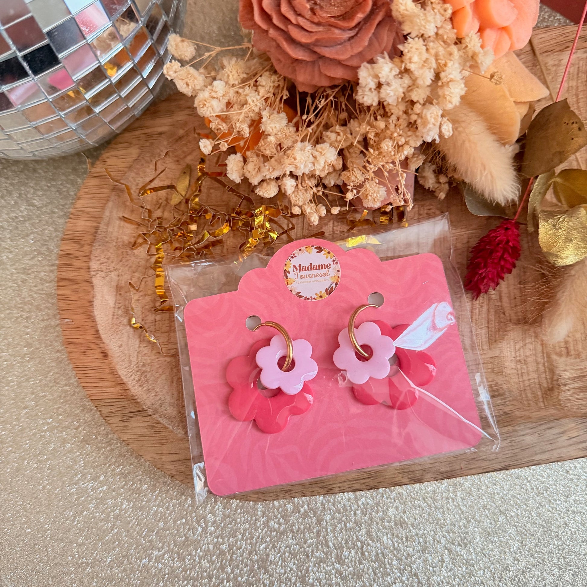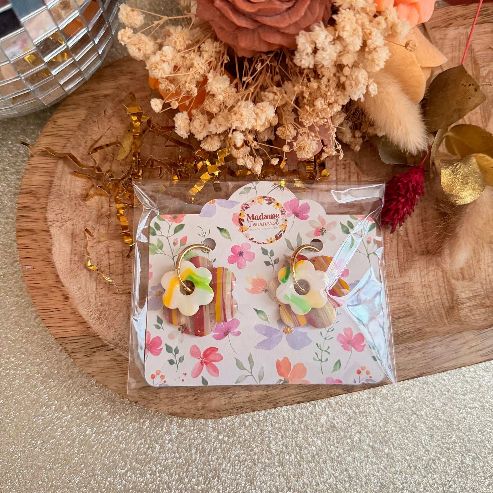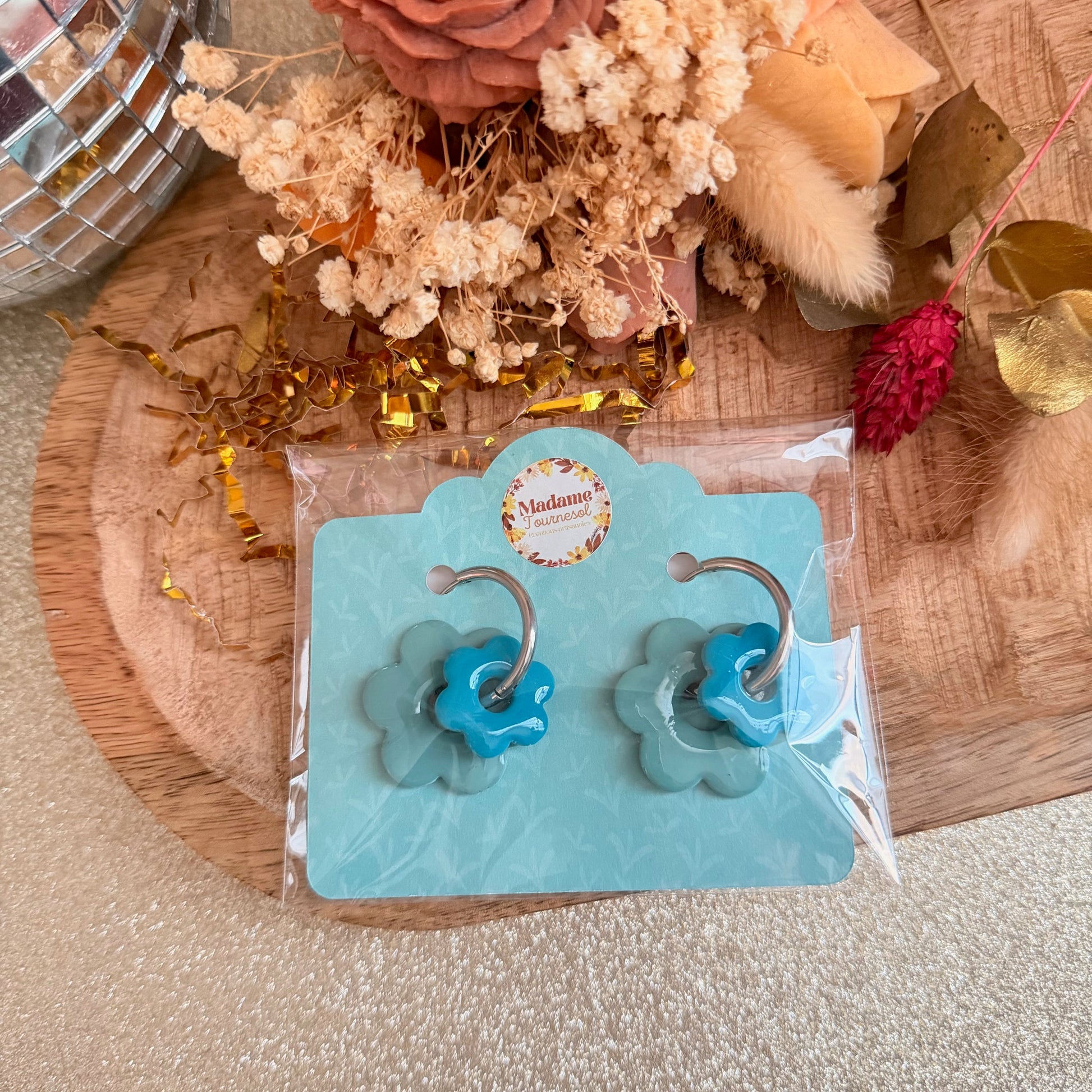 Commande reçue en un temps record, emballée avec soin, et amour. Je suis ravie de la box duo qui va faire une heureuse pour son anniversaire . les boucles sont magnifiques! J’adore merci Madame Tournesol ❤️je recommande à 200%